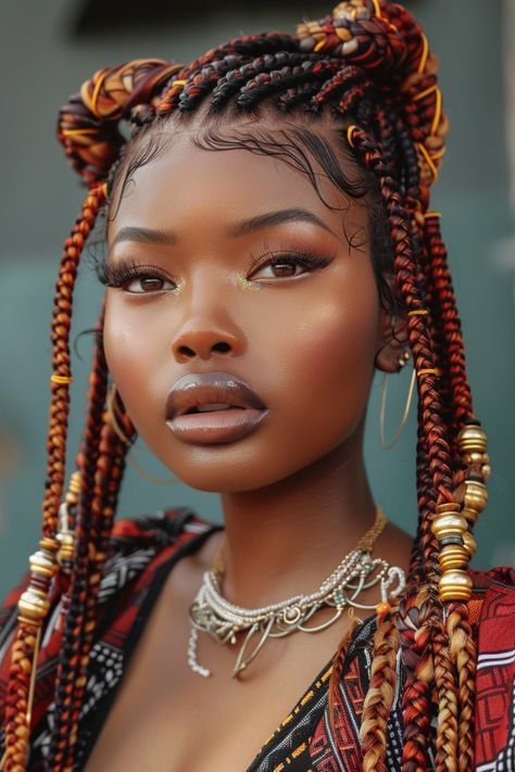 This style features a dynamic combination of red braids intertwined with beads, wrapped into an elegant crown. The fiery red color is striking and instantly brings festive cheer, while the beads highlight the intricate braiding patterns. Perfect for holiday parties, this style is bold, vibrant, and unforgettable.