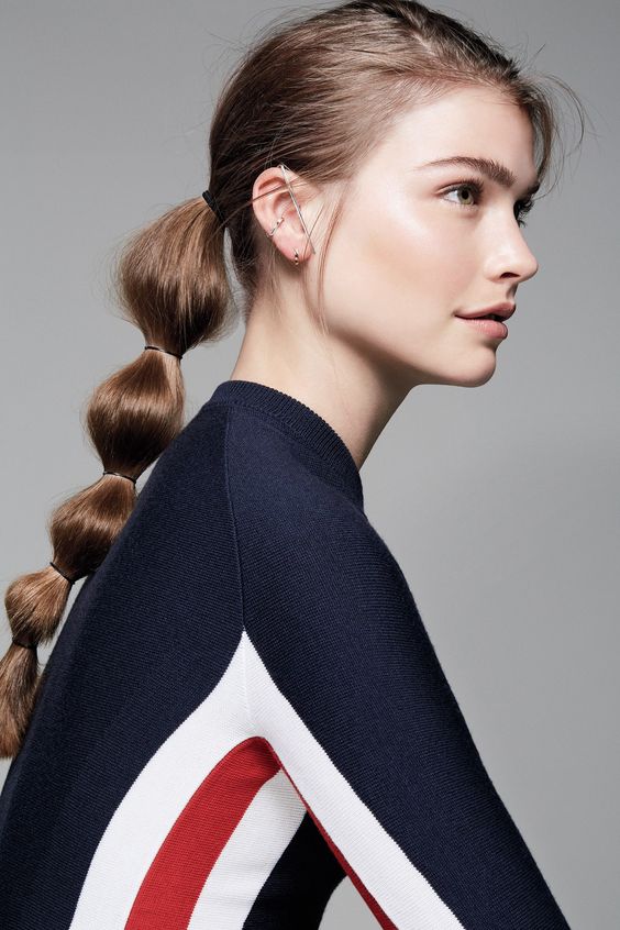 This long hair style, known as the bubble ponytail, offers a chic twist on the traditional ponytail. Perfect for those with long hair, it adds an element of fun and sophistication to your gym attire. To achieve this look, pull your hair back into a high ponytail and secure it with a band. Add more bands every two inches down the tail, pulling gently at each section to create the ‘bubble’ effect. This hairstyle is not only cute but also practical, keeping your hair out of your face while you focus on your workout.