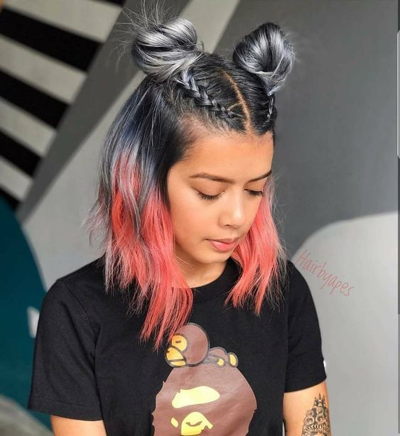 10. Youthful and Playful: The Dual Top Knots with Braids