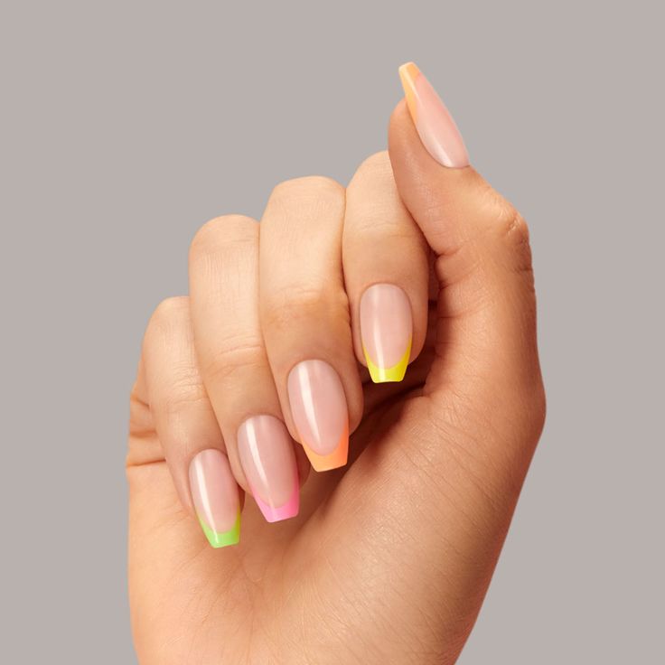 Update the classic French manicure by swapping white tips for bold colors or glitter, tailored to the coffin shape.