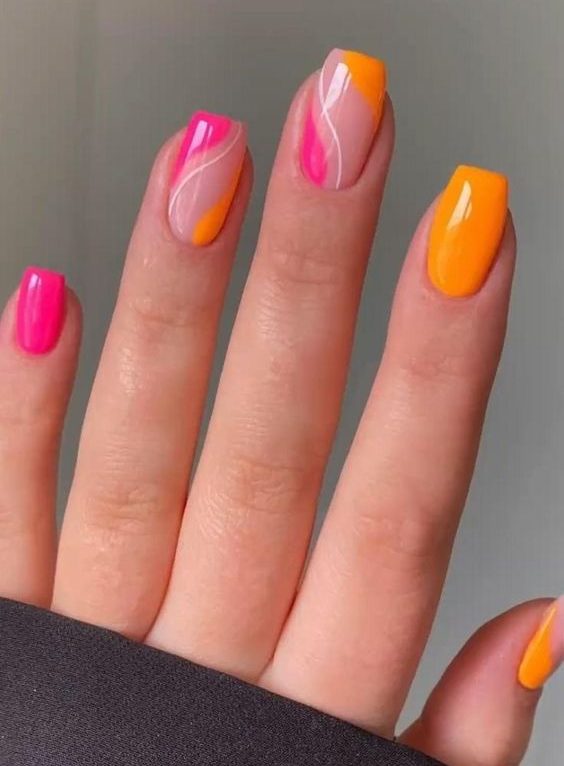 Capture the essence of summer sunsets with summer nails short coffin orange. Coral, peach, or neon, orange nails are sure to warm up your style.