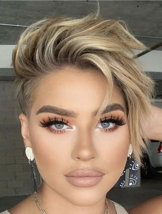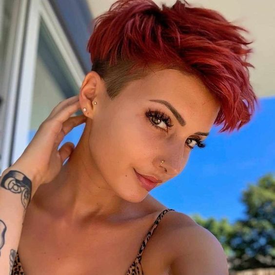 This side-swept pixie features a dramatic taper on one side, adding edgy contrast to the longer top layers. The style creates a modern, stylish silhouette that flatters and elongates the face, making it perfect for a bold, sophisticated vibe.