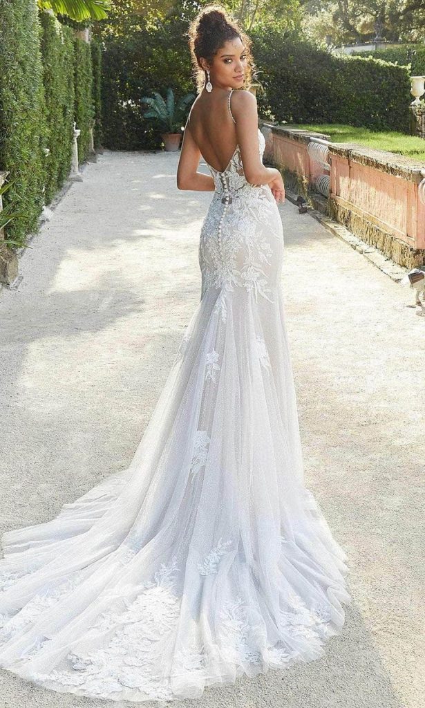 This gown is a testament to the magic of bohemian style – bold, beautiful, and bewitching. The backless design is both alluring and sophisticated, making it a stellar choice for the bride who desires to make a statement of modern elegance.