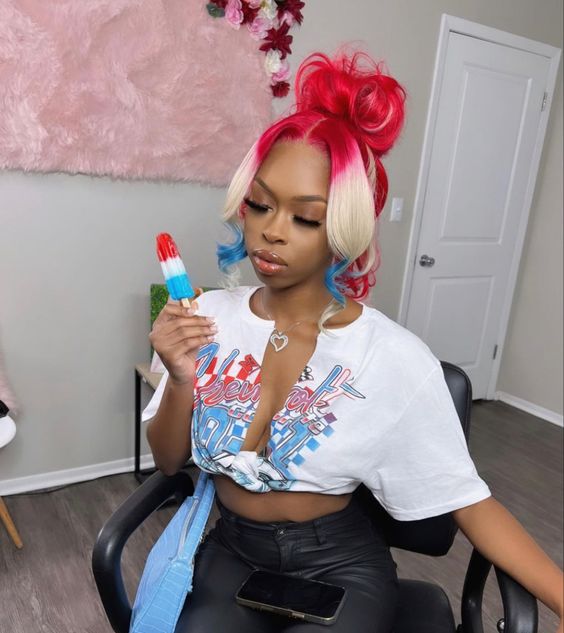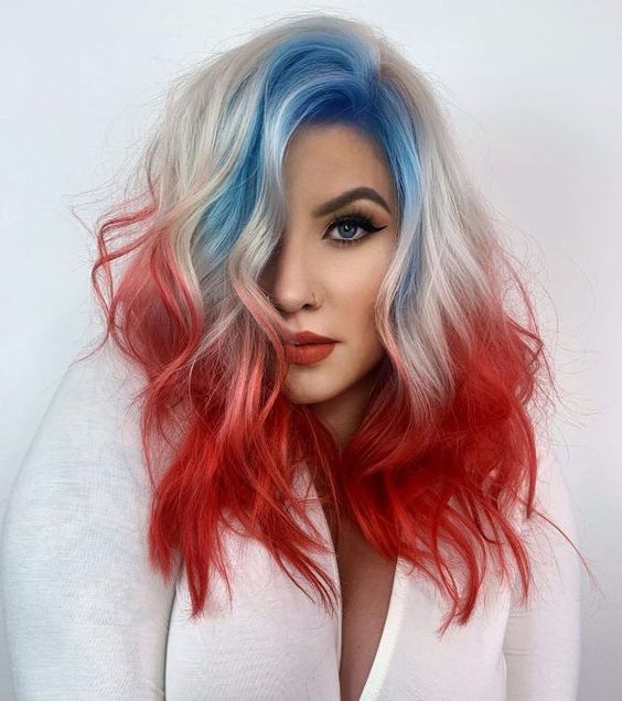 Embrace the freedom of expression with a daring and vibrant hairdo. 4th of July hairstyles for women can be as bold as a stunning blend of red and blue hues, making for an eye-catching look that celebrates the holiday with flair. This choice is especially popular among women with short hair, showcasing that length does not limit creativity.