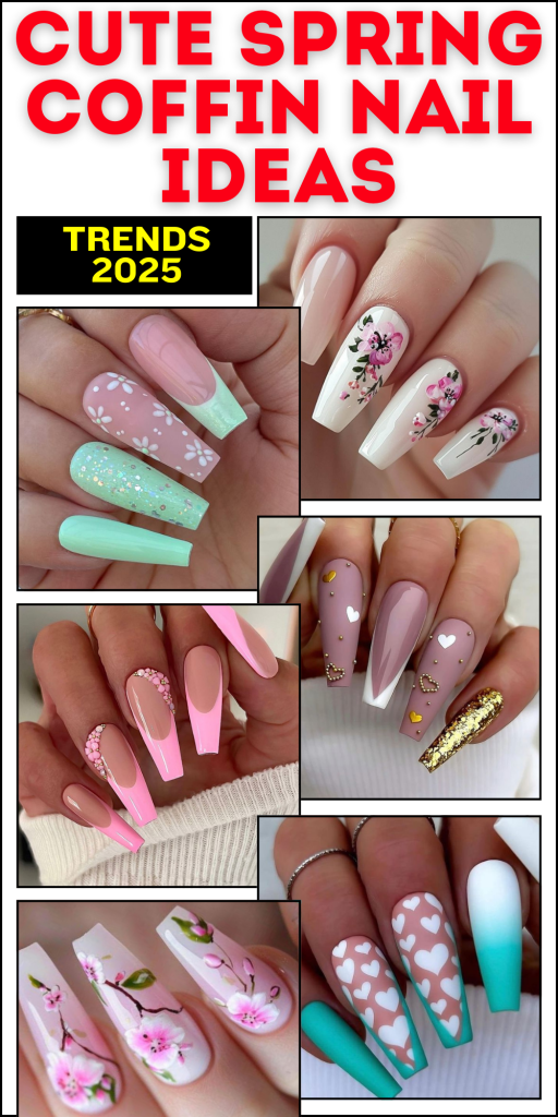 17 Cute Spring Coffin Nail Ideas 2025 With Trendy Designs: Ombre, French, Pastel, Pink And More