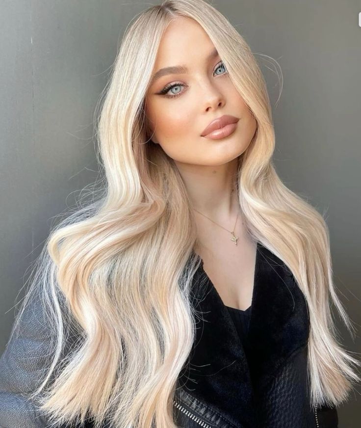 Sleek and modern, this bright platinum blonde look showcases long, perfectly sculpted waves. The icy tones bring out a clear and light vibrancy, making this style ideal for anyone seeking a standout spring look in 2025.