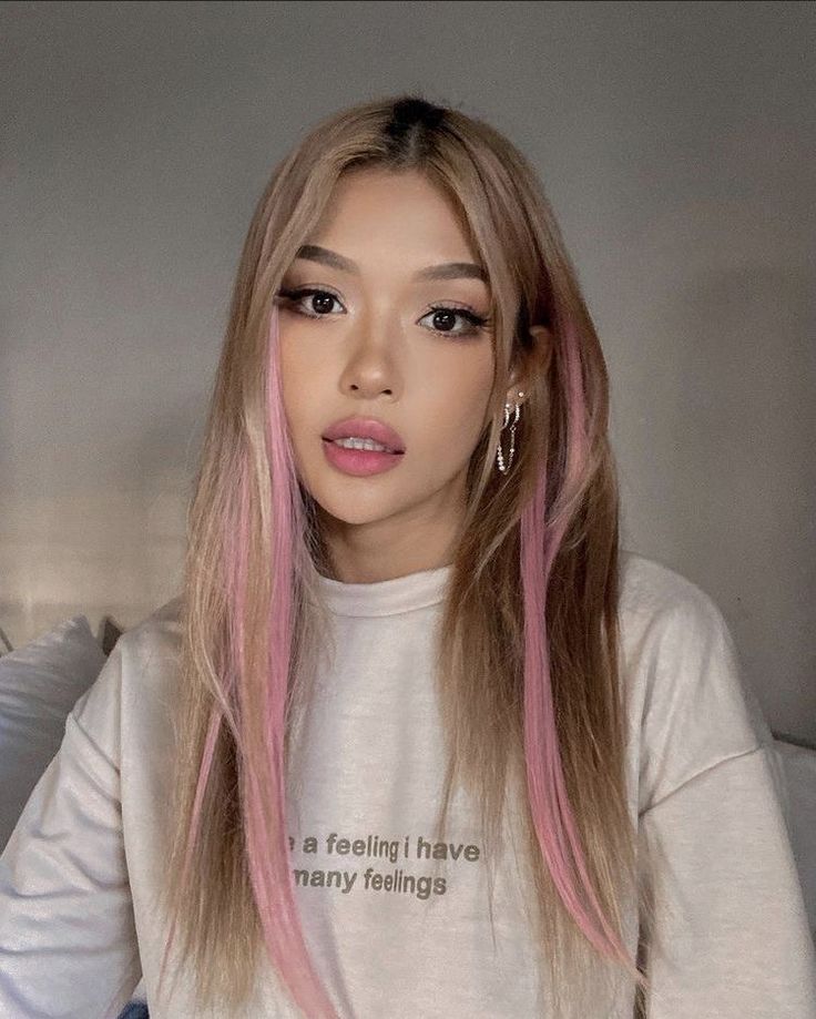 For a playful and youthful take on blonde, this style integrates money piece highlights in a soft blush pink hue. The subtle pastel accents blend beautifully with the natural blonde, adding a pop of color to your look. Perfect for anyone who loves color ideas with a creative twist.