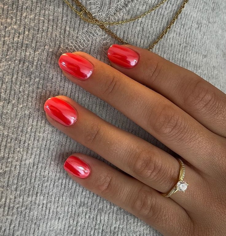This red gradient design transitions smoothly from bright coral to deeper tones, embodying the lively spirit of spring. The subtle shimmer enhances its appeal, while the short shape makes it practical and easy to maintain. It’s ideal for both casual and formal settings.