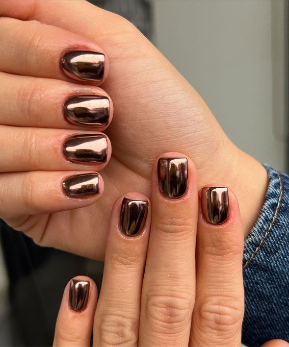 These stunning bronze chrome nails are a showstopper for spring. The sleek metallic finish reflects light beautifully, making it ideal for evening events. The simple and solid design exudes confidence and pairs well with a denim jacket or a cocktail dress.