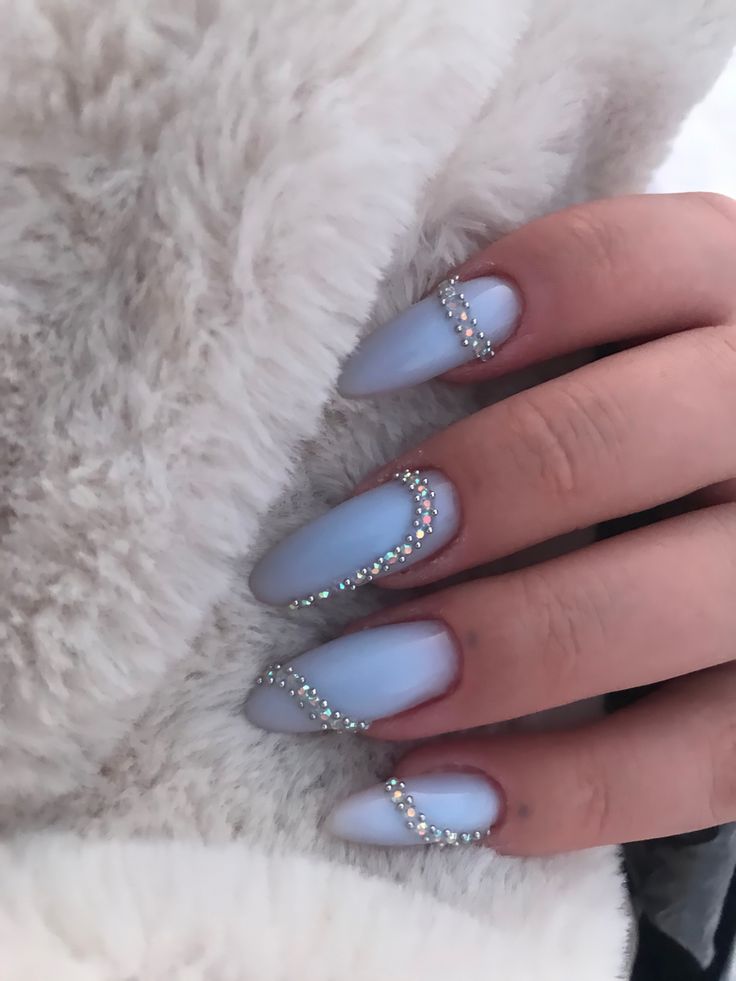 This dreamy blue design is elevated with sparkling rhinestones arranged in intricate patterns. The almond shape adds elegance, while the embellishments make it stand out. This glamorous option is perfect for women who want a touch of luxury in their everyday style.