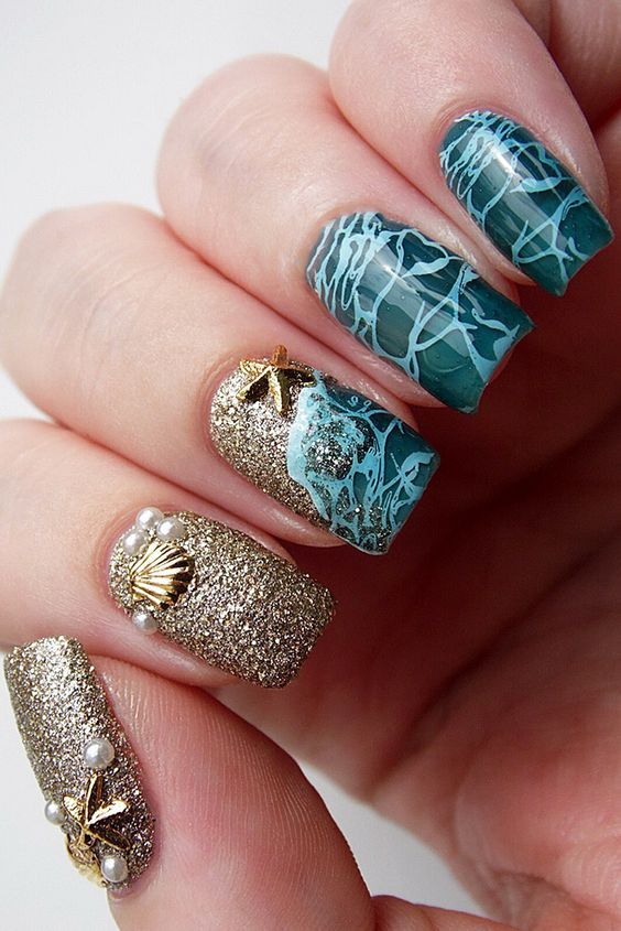 Capture the essence of the beach with ocean-inspired designs. Think waves, sea creatures, and sandy textures on your summer nails square.