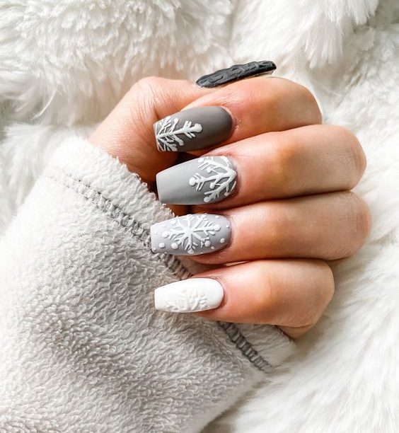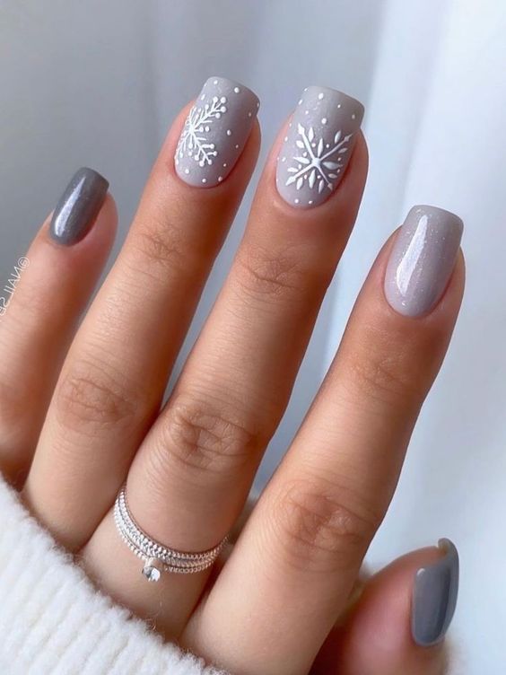 Pair these nails with light grey or white outfits, creating a soft and elegant winter look that’s perfect for formal office settings or casual winter outings.