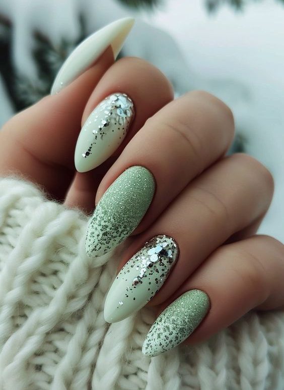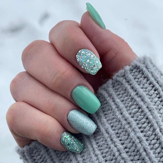Pair these nails with a grey sweater or a mint scarf for a cohesive winter look, perfect for low-key parties or festive family dinners.