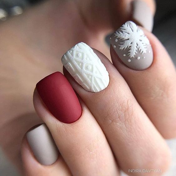 To style these nails, opt for a beige or maroon coat, complemented with chunky knit scarves. This design is great for a weekend outing in the snow or even a holiday dinner party.