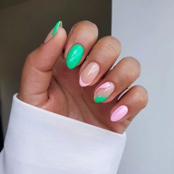 3. Refreshing Summer Nails Short Pink and Green Harmony