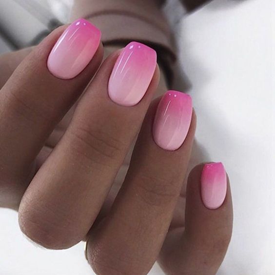 Embrace the dreamy side of summer with a summer nails short pink ombre design. This gradient effect, which blends pink into a lighter shade or even into a different color, mirrors the soft, fading lights of a summer sunset.