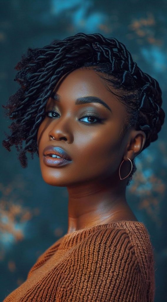 To maintain this hairstyle, regularly retwist the roots for a polished look. Use light edge control products to define the baby hairs, ensuring a clean finish. Pair this style with a bold lip or minimal makeup for a striking appearance.