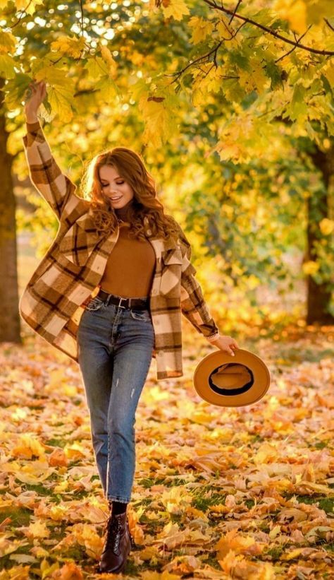 You can never go wrong with classic fall layers, and this outfit is a testament to that. A tan plaid jacket layered over a warm brown sweater, paired with blue jeans and ankle boots, creates a casual and comfortable look that’s perfect for a laid-back date night. The addition of a wide-brimmed hat ties the outfit together, making it a versatile choice for everything from apple picking to a casual dinner.