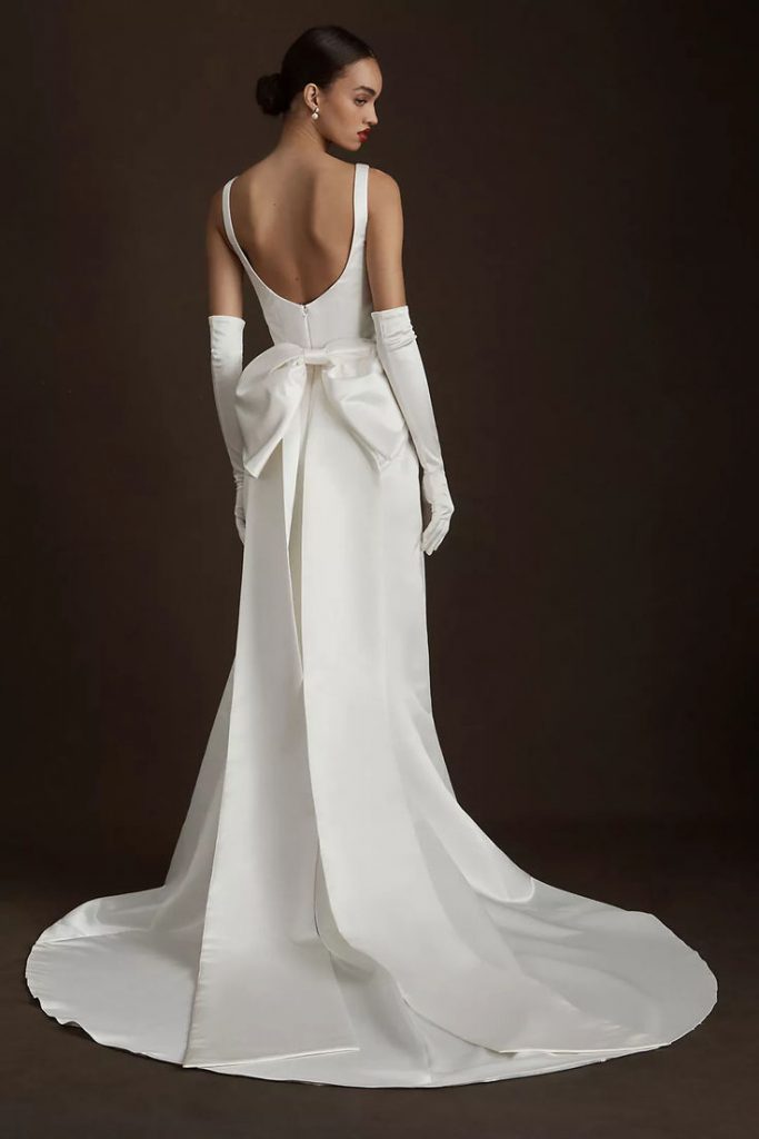 In a world where grandeur often takes center stage, there’s something profoundly captivating about a simple unique wedding dress vintage. This gown’s sleek silhouette, unadorned satin, and subtle bow detail at the back marry simplicity with sophistication, presenting an ideal choice for the minimalist bride.