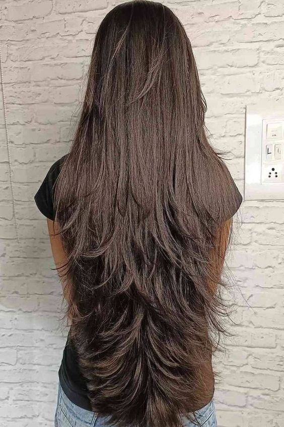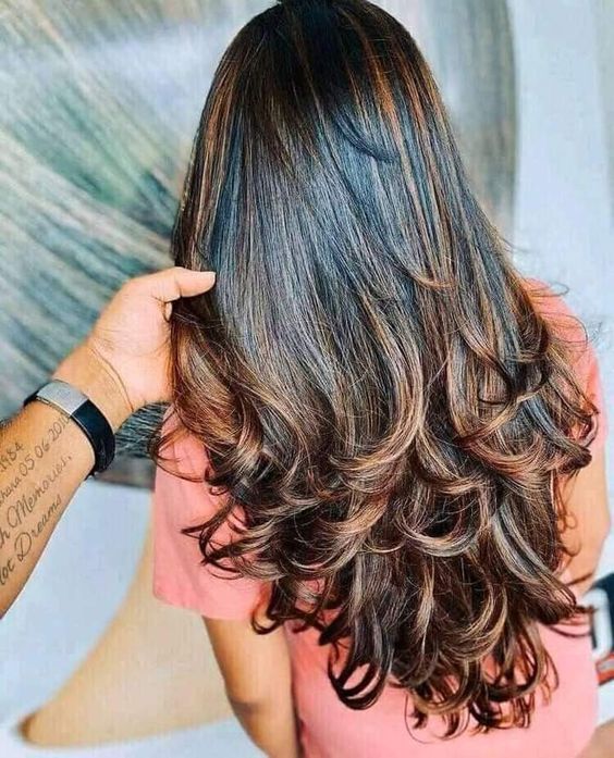 Long hair paired with waterfall layers offers a mesmerizing and elegant look. This style adds depth and movement, making your long tresses more captivating and manageable.