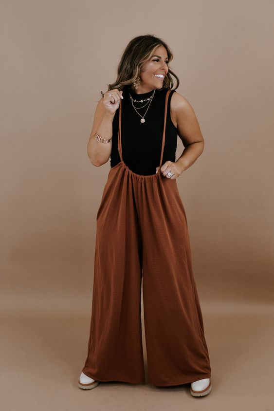 6. Earthy Brown Overalls for a Warm Autumn Day
