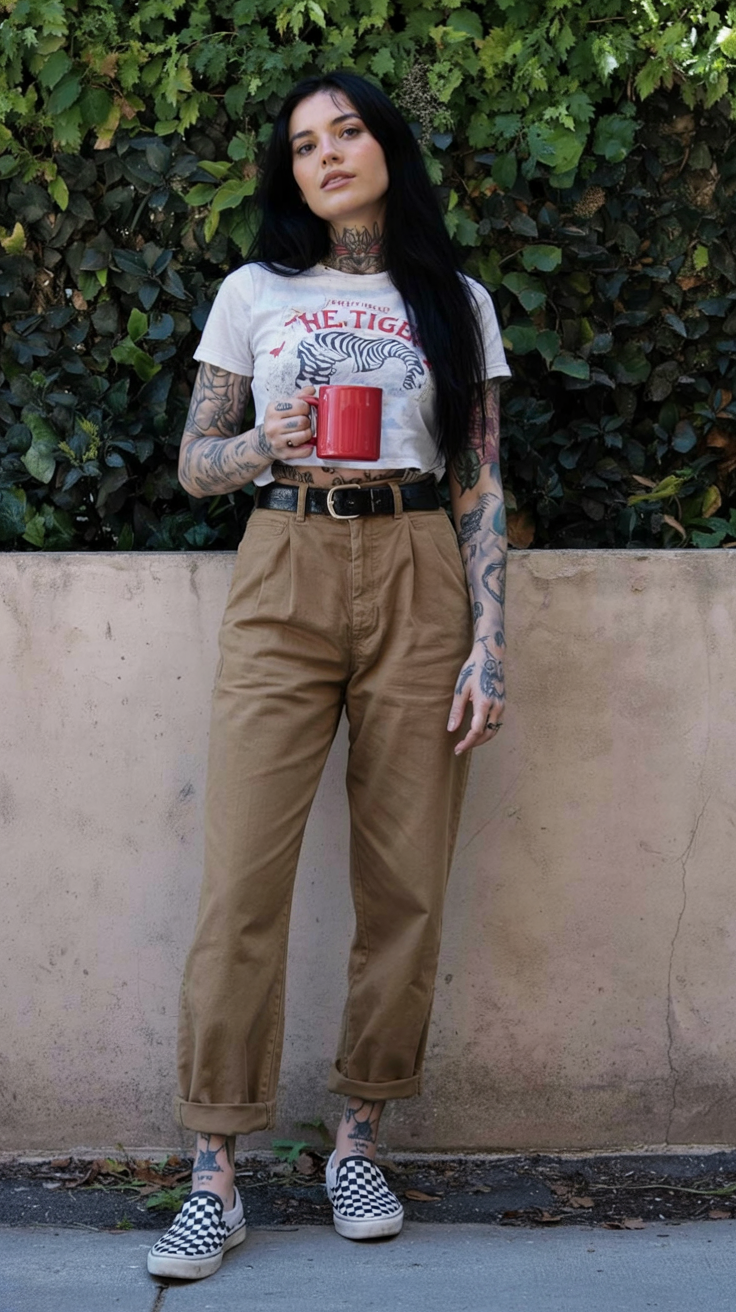 If you’ve been waiting for a sign to try this kind of streetwear, let this be it. The pieces are basic—jeans, a tee, and boots—but together they feel fresh for 2026 and beyond. Roll the cuffs to show a bit of ankle, add a cozy cardigan if it’s cold, or swap the jeans for a skirt when you want something dressier. You don’t have to change your whole wardrobe; just start mixing in one or two Alt touches like this, and you’ll be surprised how quickly your style energy shifts.