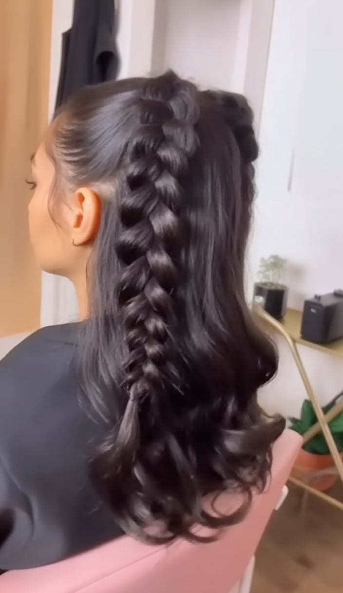 This one has that cool, confident energy where your hair looks interesting from every angle—like you planned it, but you’re not trying to impress anyone (even though you totally are). The braid gives structure and drama, while the loose curls keep it soft and feminine. It’s the perfect mix of “I’m put together” and “I’m here to have fun,” which honestly is the best birthday combo.