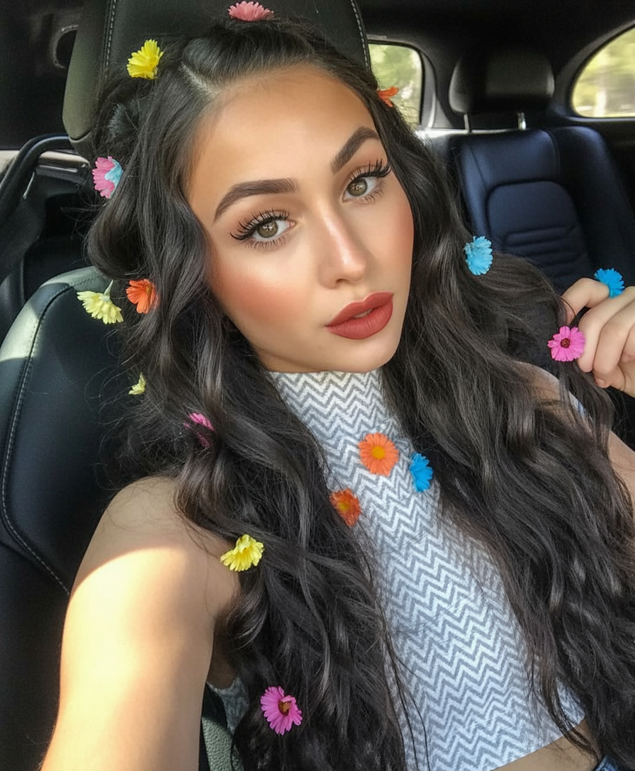 This hairstyle is basically a mood booster. The soft waves feel pretty and effortless, and the little pops of color make it look like your hair is joining the party. It has that carefree, “let’s take a million pictures” energy—fun, light, and totally not too serious. If you want your birthday look to feel joyful instead of overly polished, this one does it.