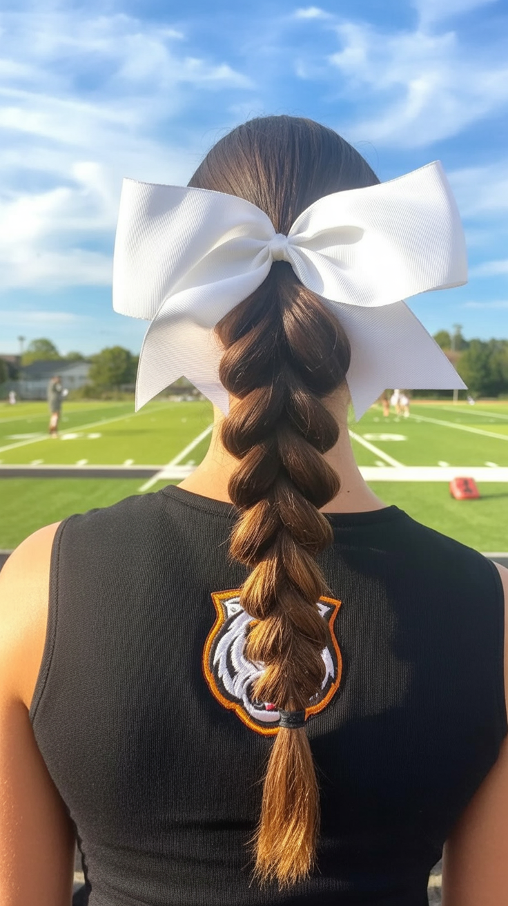 Perfect for competition or tryouts, this look keeps hair tightly in place while allowing for tons of movement. It suits long, thick hair best and can be adapted into different braid styles depending on the routine. Opt for a ribbon in your school colors for that polished, game-ready finish.