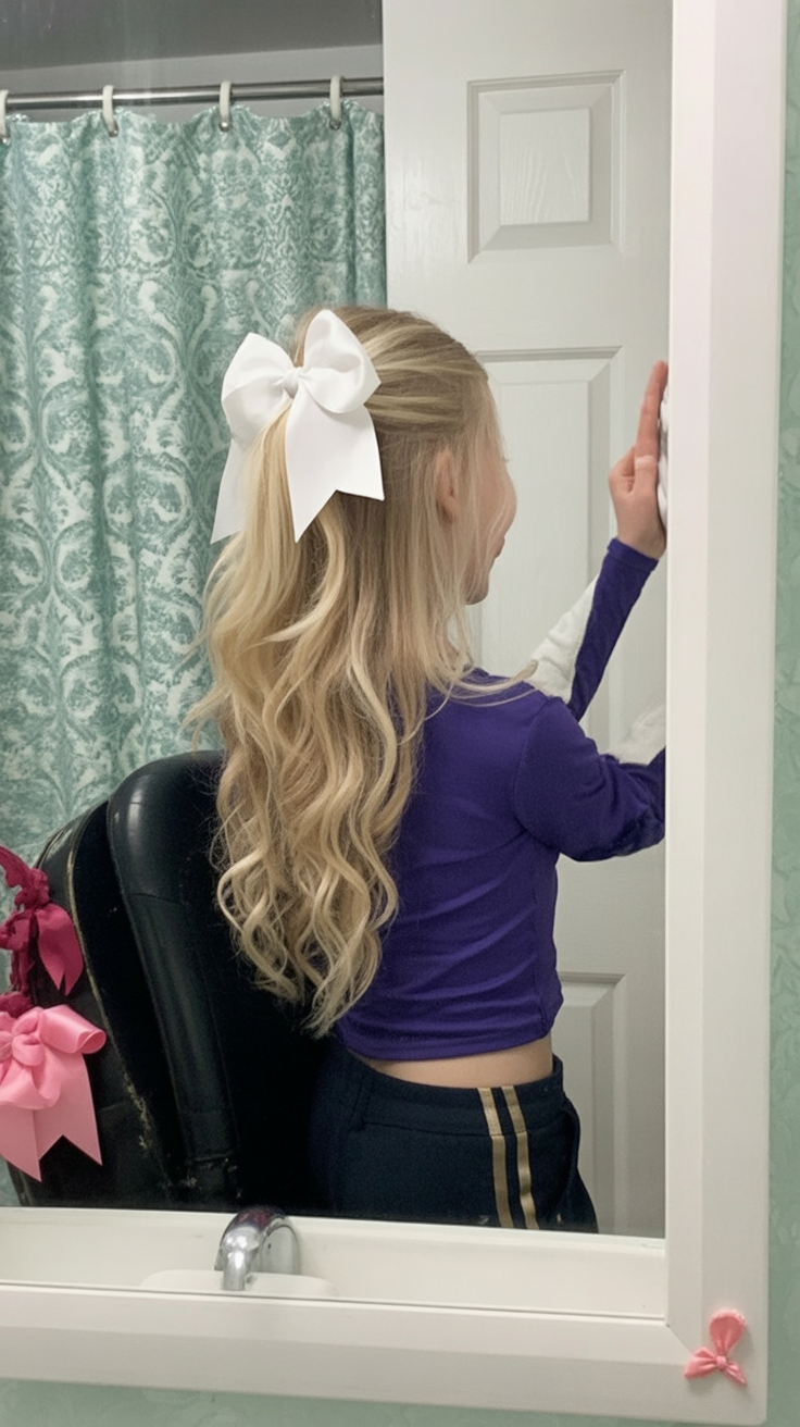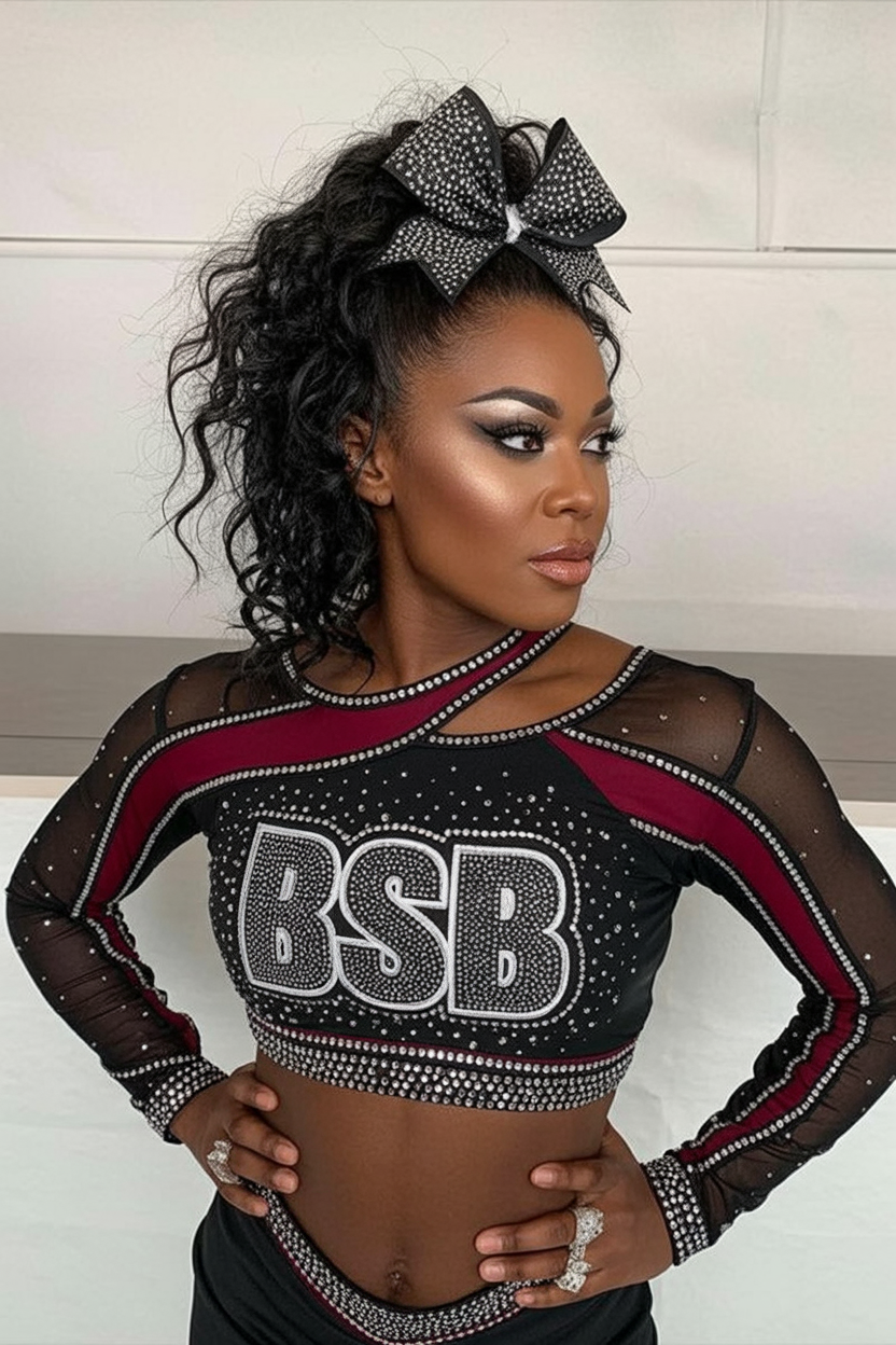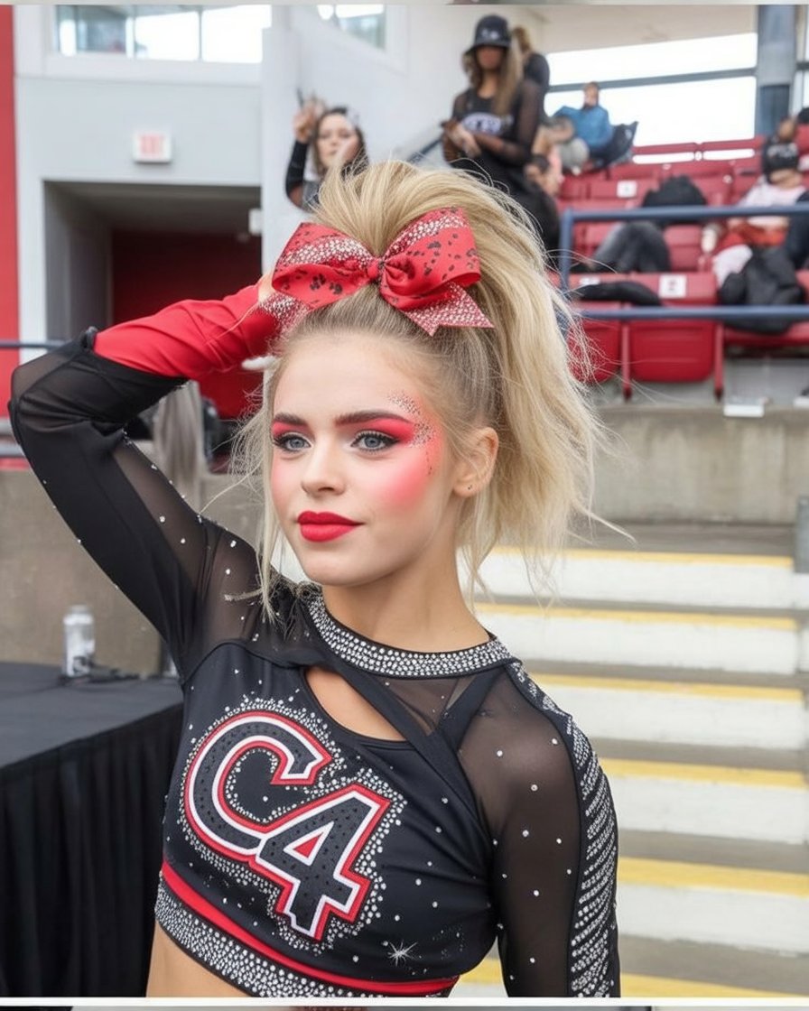 There is something so timeless about a simple slick-back ponytail with a crisp white bow. It feels fresh, polished, and most picture-perfect, which makes this look a staple for cheerleaders who want something with a little more impact but an easy application. The clean lines of this style are very graceful but very firmly hold through sideline routines.