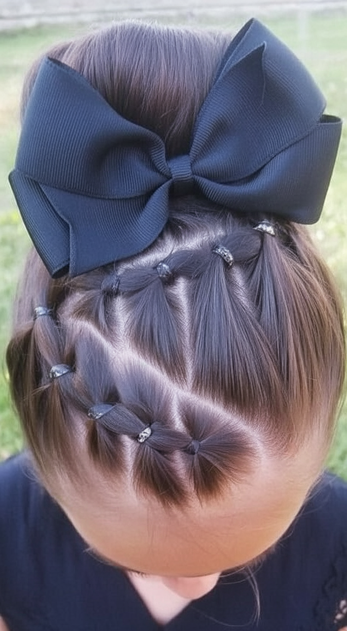 Kids and little kids love this style because it feels like adorning their hair with party decorations. It’s also pretty practical; everything stays on tightly, so nothing falls out mid-routine. Just remember to put some gel at the base to lock in that sleek shine before adding the sparkle.