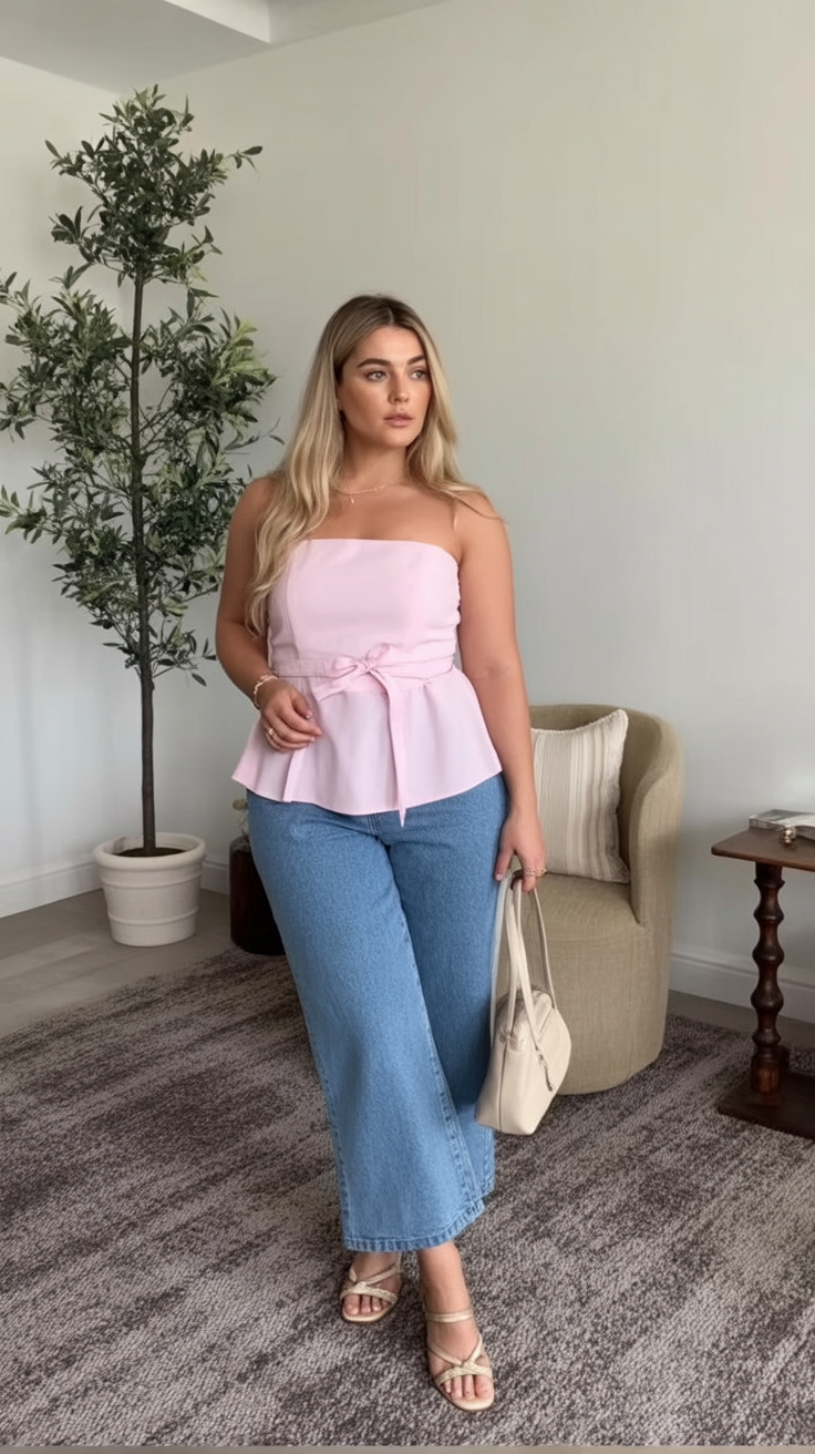 This look feels confident, feminine, and quietly flattering. The structured top creates shape without feeling restrictive, while the jeans keep everything grounded and wearable. It’s one of those outfits that feels special enough for plans but still comfortable enough for everyday wear.