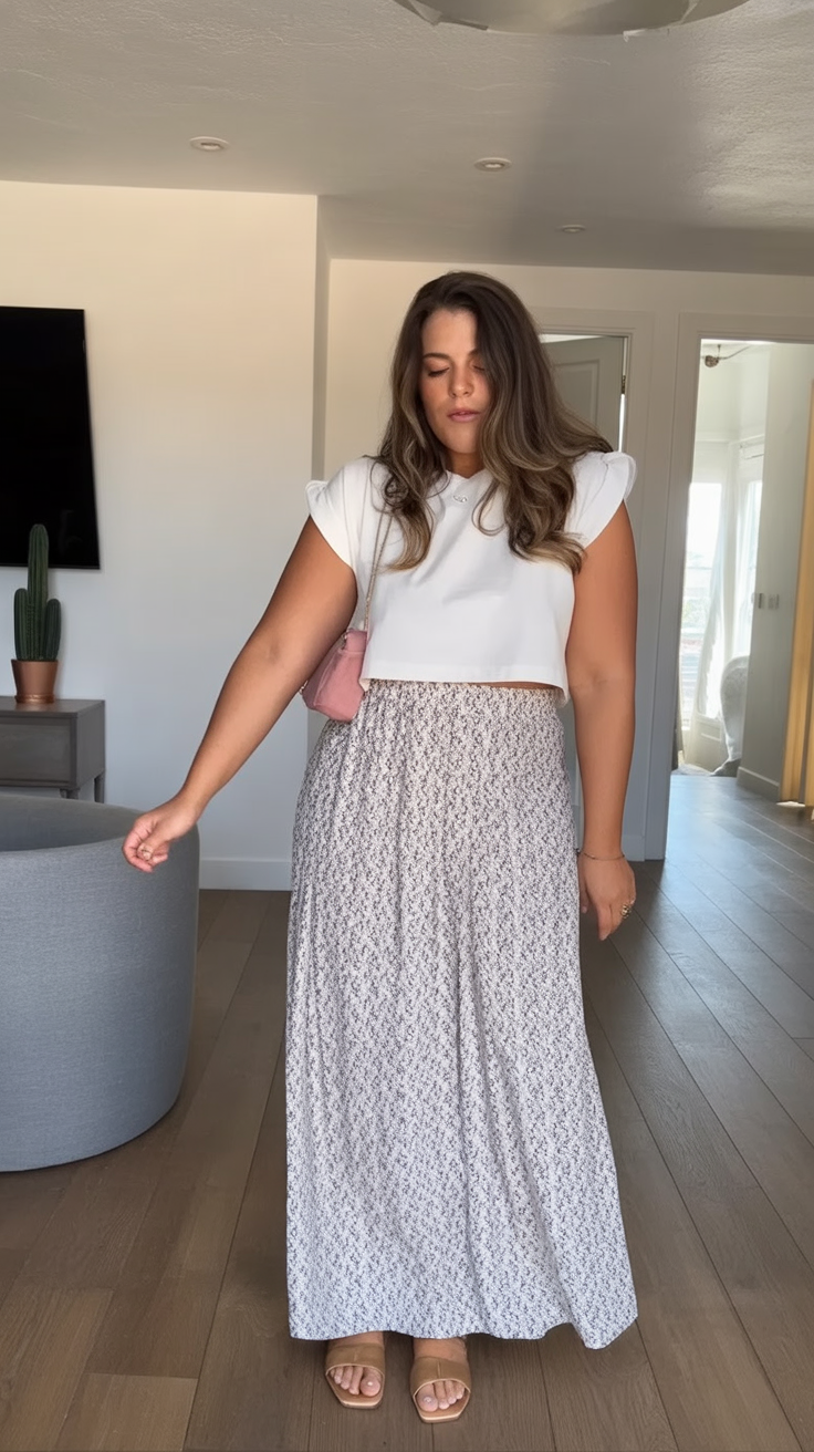 There is something so timeless and peaceful about black and white put together this way. The fitted tank keeps things sleek, while the breezy white skirt brings softness and movement. It’s classy, understated, and great for the ladies who are all about timeless shapes with a twist.