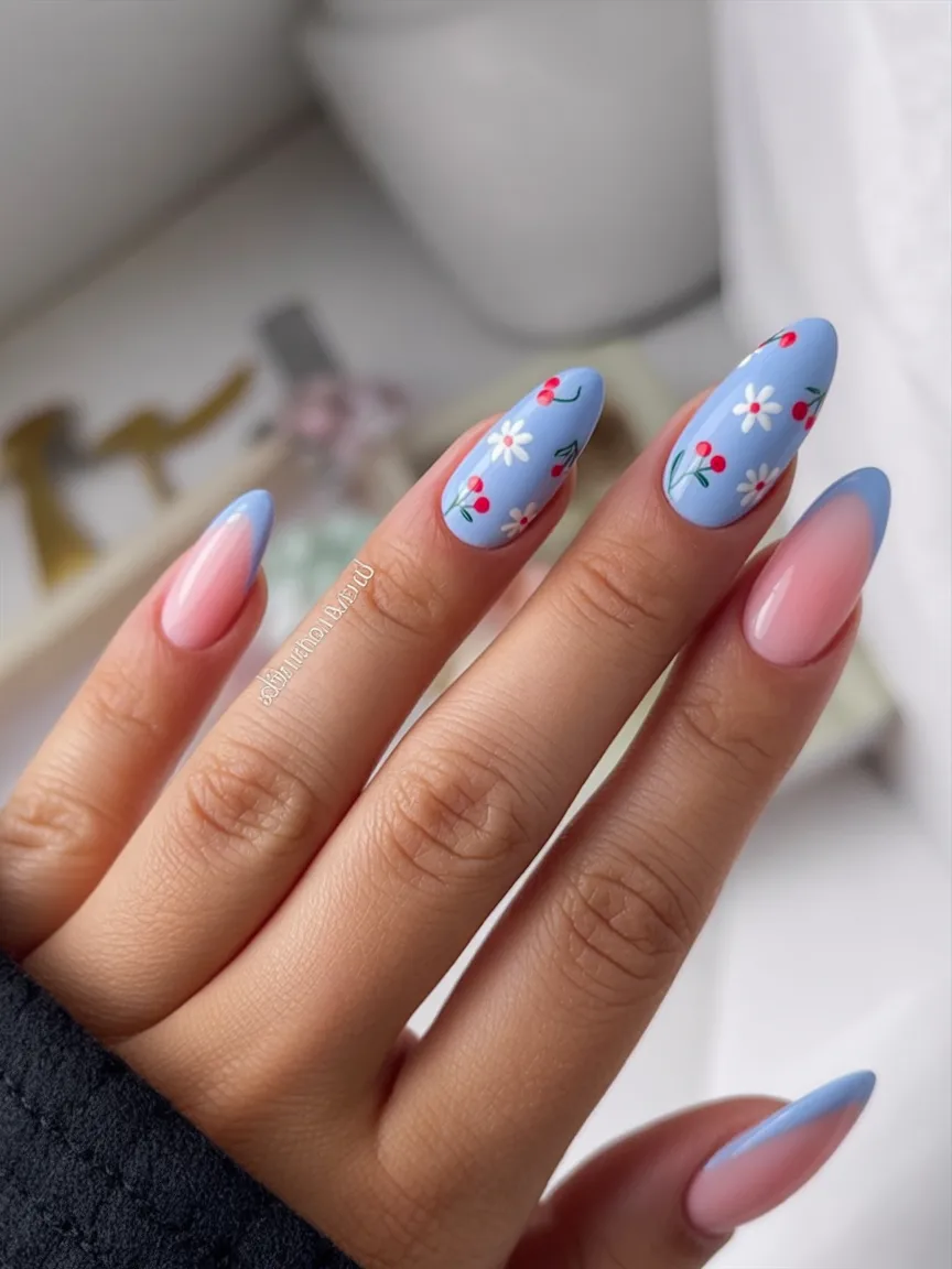 If you love a modern French tip but want it updated for 2026, this is such a beautiful option. The almond shape keeps it elegant, while the blue tips add personality without going bold. It’s perfect for anyone who wants cool spring nails in 2026 that feel feminine, wearable, and subtly eye-catching.