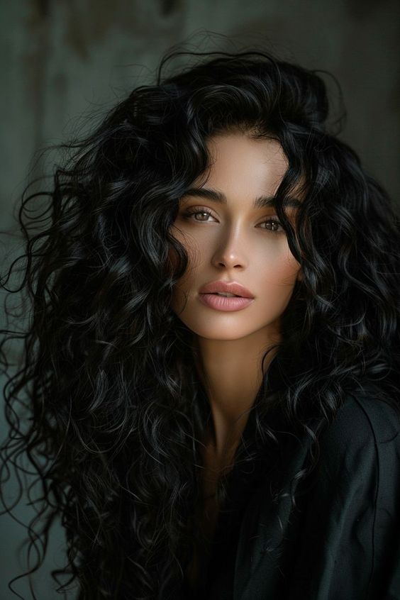 This stunning, glossy black mane is all about embracing natural curls and volume. The rich black hue complements the texture of the hair, giving it a healthy, shiny look. Perfect for long hair, the curls create a luxurious and effortless vibe, ideal for winter days when you want to keep your look both cozy and stylish. This look is ideal for women who love their natural curls and want a low-maintenance yet elegant hairstyle that speaks volumes—literally. The deep color also highlights the individual curl strands, making them pop even more.