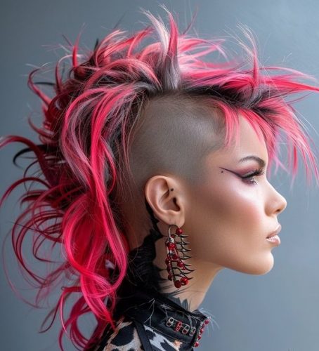 For the ultimate statement-maker, this bold pink mohawk with a shaved undercut is a fearless choice. The contrast between the neon pink and the dark roots adds depth and dimension, while the voluminous, textured strands create an edgy, punk-inspired look. If you’re ready to push the boundaries of winter hair trends, this is the look for you. It’s a great fit for those with a rebellious streak and a bold sense of style. The deep dark base complements the vibrant pink, making this mohawk stand out in the best way.