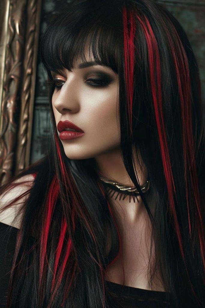 Gothic Black with Deep Red Strands