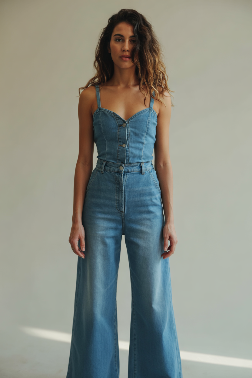 6. Sweetheart Denim Jumpsuit With Subtle Flare