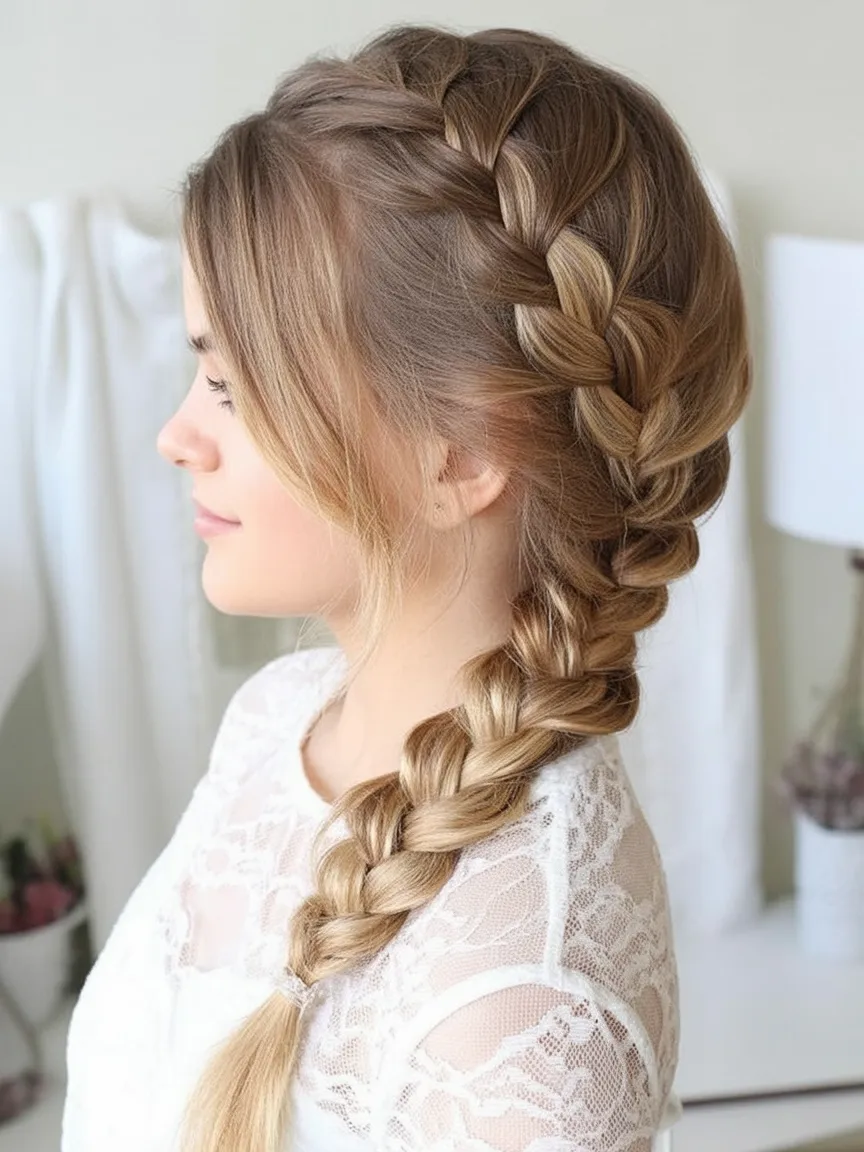 This braid feels timeless and calm, with a soft, romantic energy that works beautifully for Easter. The fullness of the braid adds dimension, while the side placement keeps the look relaxed and approachable. It’s simple, but never boring.