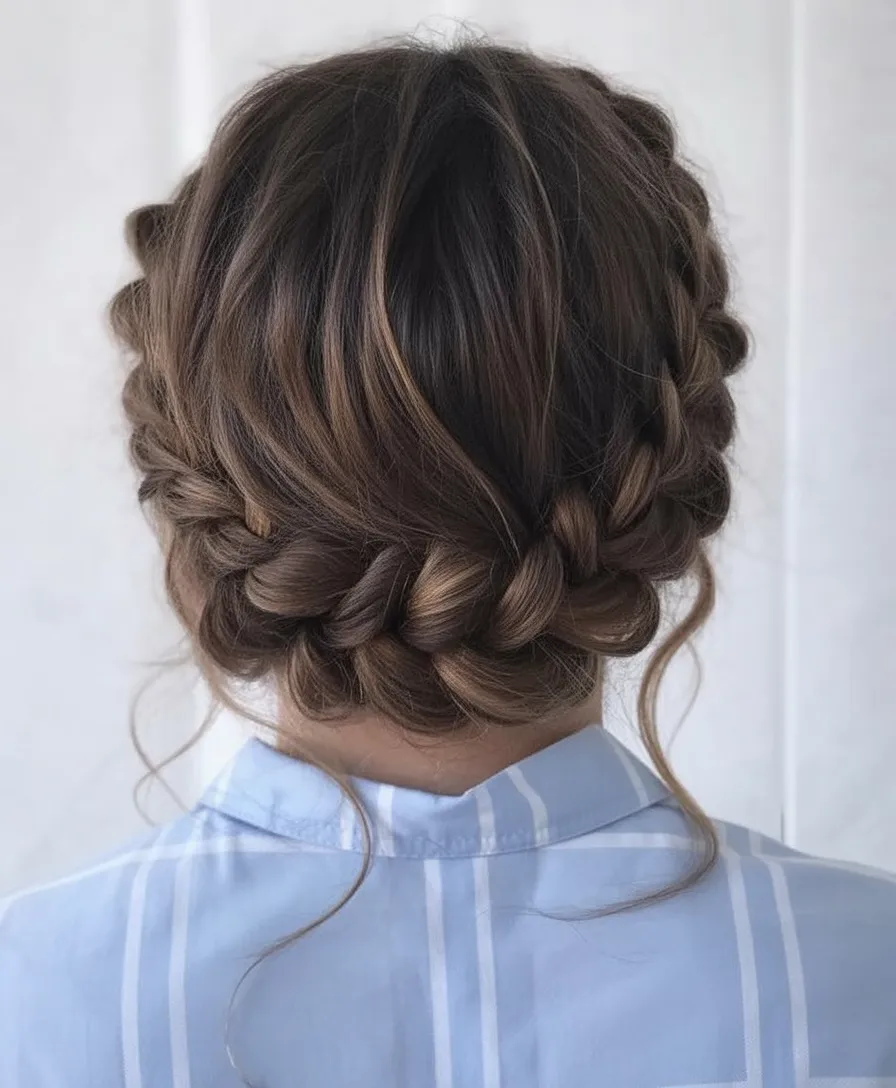 There’s a calm elegance to this hairstyle that feels almost timeless. The braid wraps gently around the head, creating a soft crown effect that looks thoughtful and refined. It’s the kind of style that feels appropriate for Easter gatherings without trying too hard—quietly beautiful and effortlessly graceful.