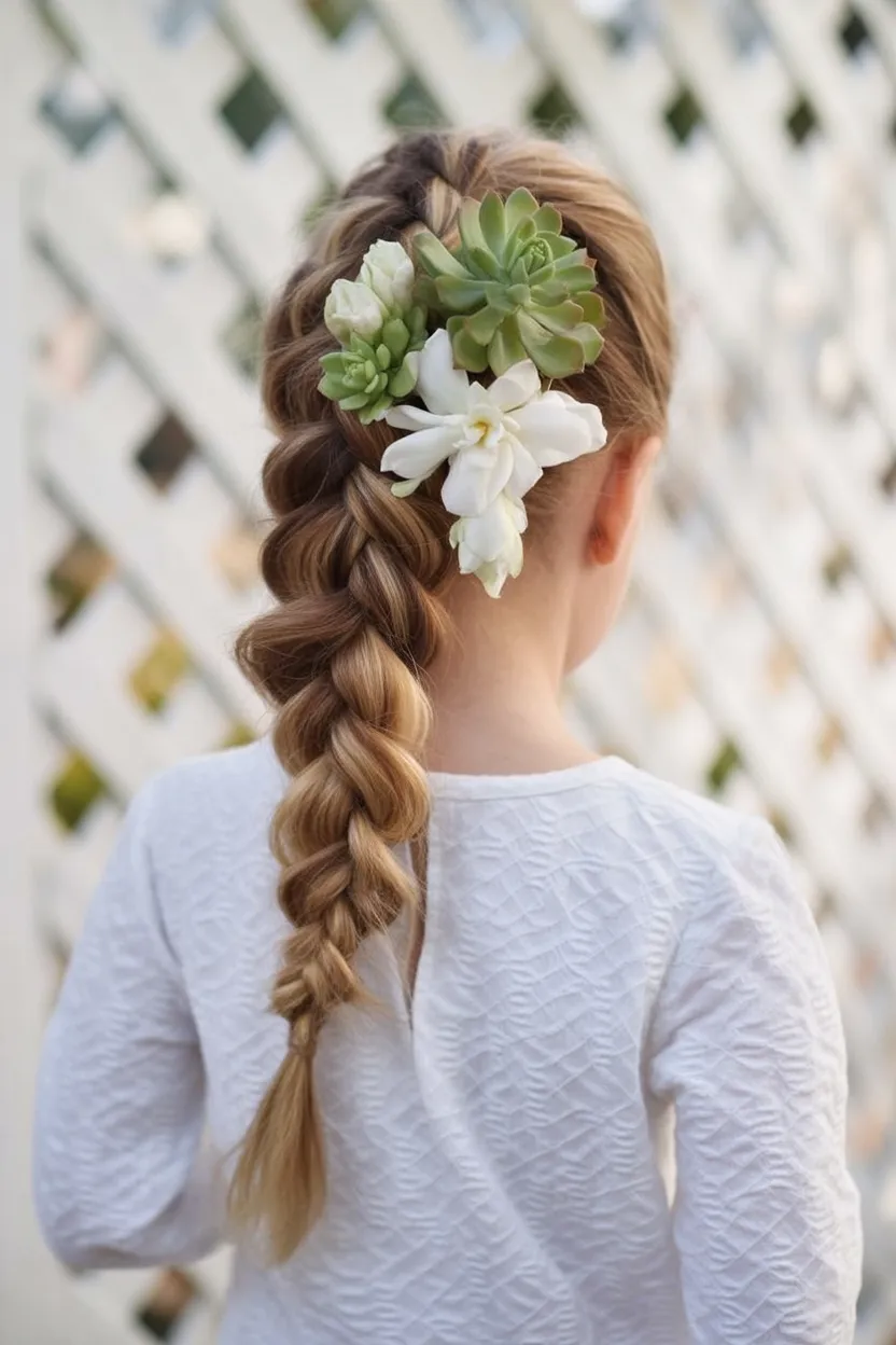 This style is perfect for kids who enjoy dress-up moments and works well on medium to thick hair. It’s secure enough to last through the day and gentle on the scalp. If you love braids with a decorative twist, this is a lovely option that feels joyful and creative.