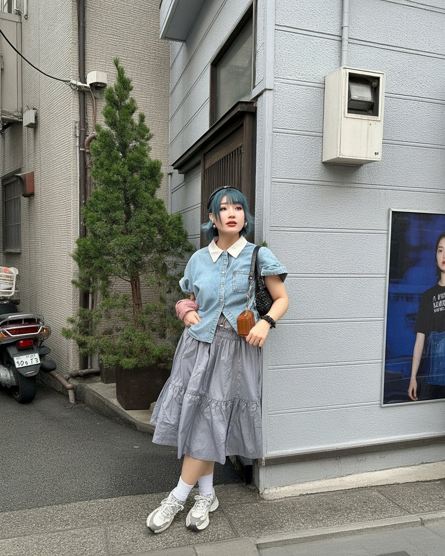 This style is perfect for women who want an easy outfit that still feels current. Denim works across body types, including plus size, and can be styled up or down depending on footwear and accessories. It’s a great option for May when the weather warms up, and it fits naturally into casual travel days exploring Tokyo neighborhoods or local markets.