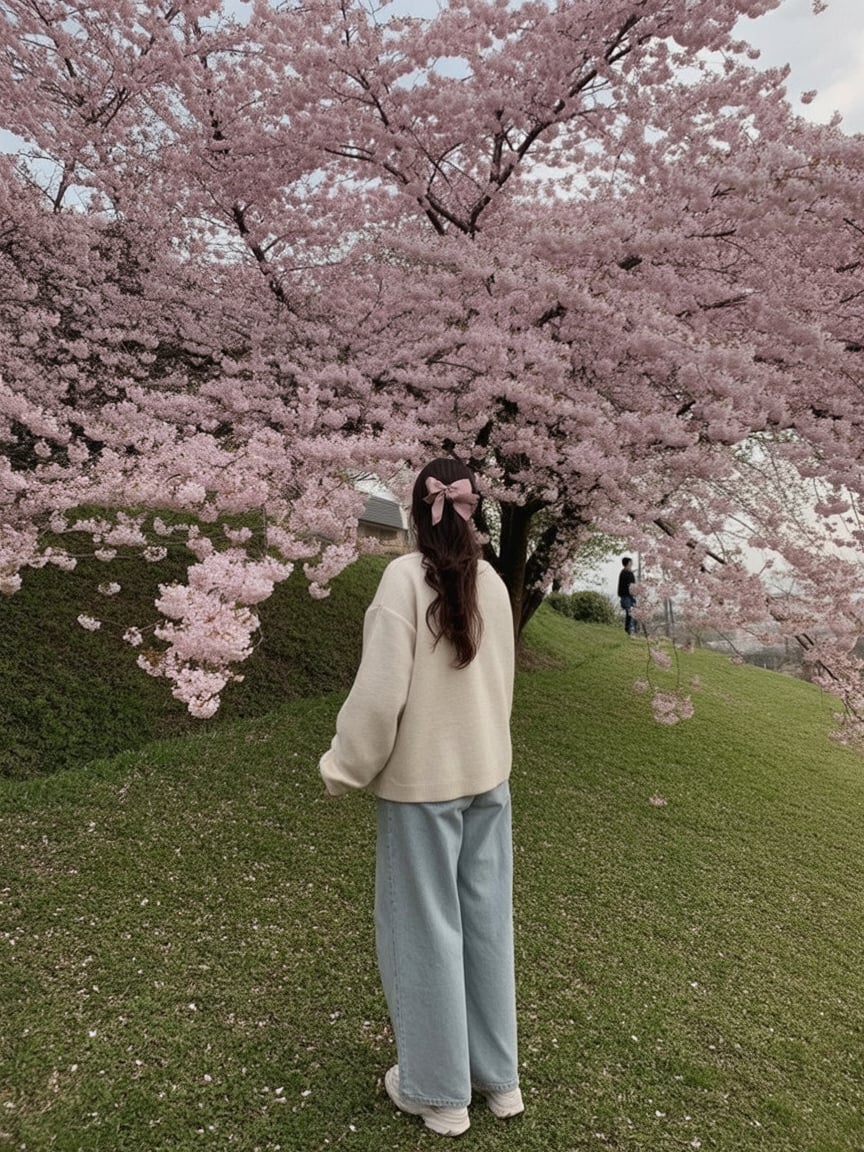 This outfit feels peaceful and reflective, like standing still while petals fall around you. The soft layers and relaxed fit create a sense of ease that feels perfectly in tune with cherry blossoms and spring air.
