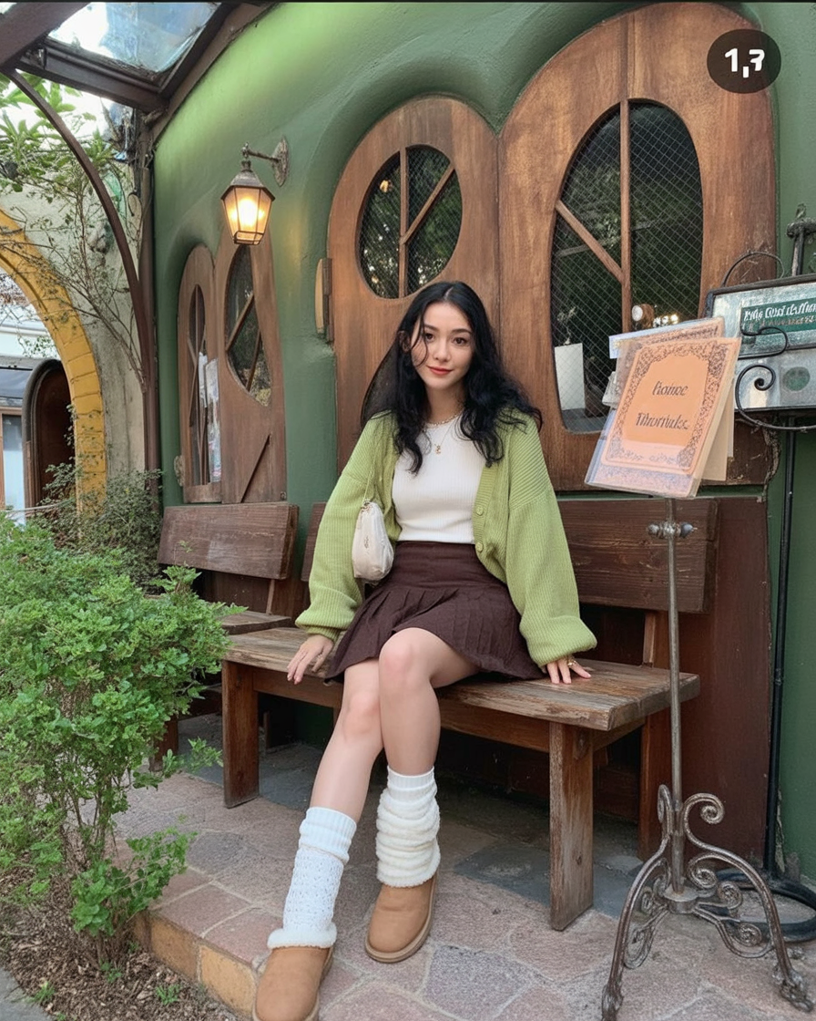 This look feels warm and inviting, like discovering a quiet café tucked away from the crowds. The gentle colors and soft textures create a comforting mood that feels perfect for slowing down and enjoying the moment.