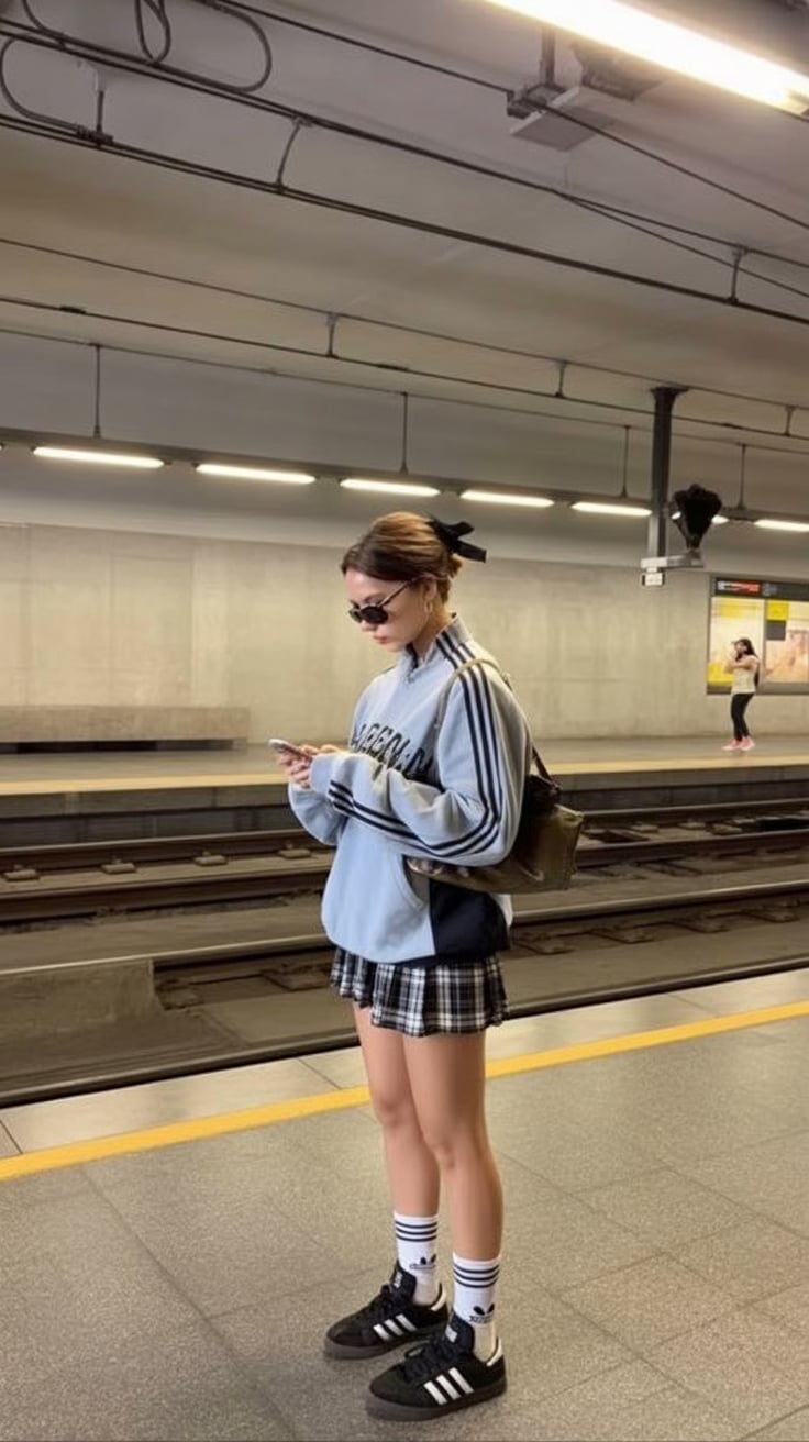 This look captures the fast-paced energy of city life, where comfort and confidence go hand in hand. It feels urban, practical, and quietly cool, like someone who knows exactly where she’s going. There’s an effortless strength in choosing sporty layers while keeping the outfit intentional.