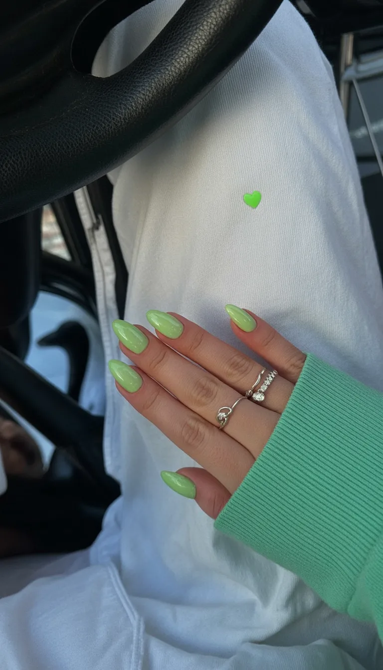 Green chrome nails always feel like a breath of fresh air, and this shade hits that sweet spot between earthy and playful. The almond shape softens the boldness of the color, creating a manicure that feels grounded but is still fun. It’s unexpected in the best way—subtle enough for everyday, yet unique enough to stand out.