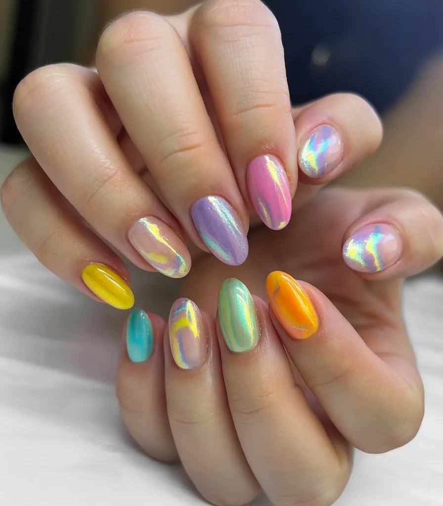 11. Rainbow Pastel Chrome Mix for Playful Spring Energy