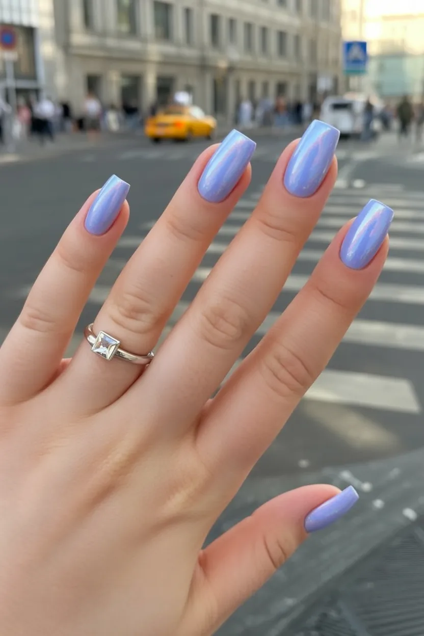 This pearly chrome finish feels timeless and modern all at once. The soft, reflective sheen gives your nails a healthy glow rather than a bold statement, making it perfect if you love understated elegance. It’s clean, luminous, and endlessly wearable.