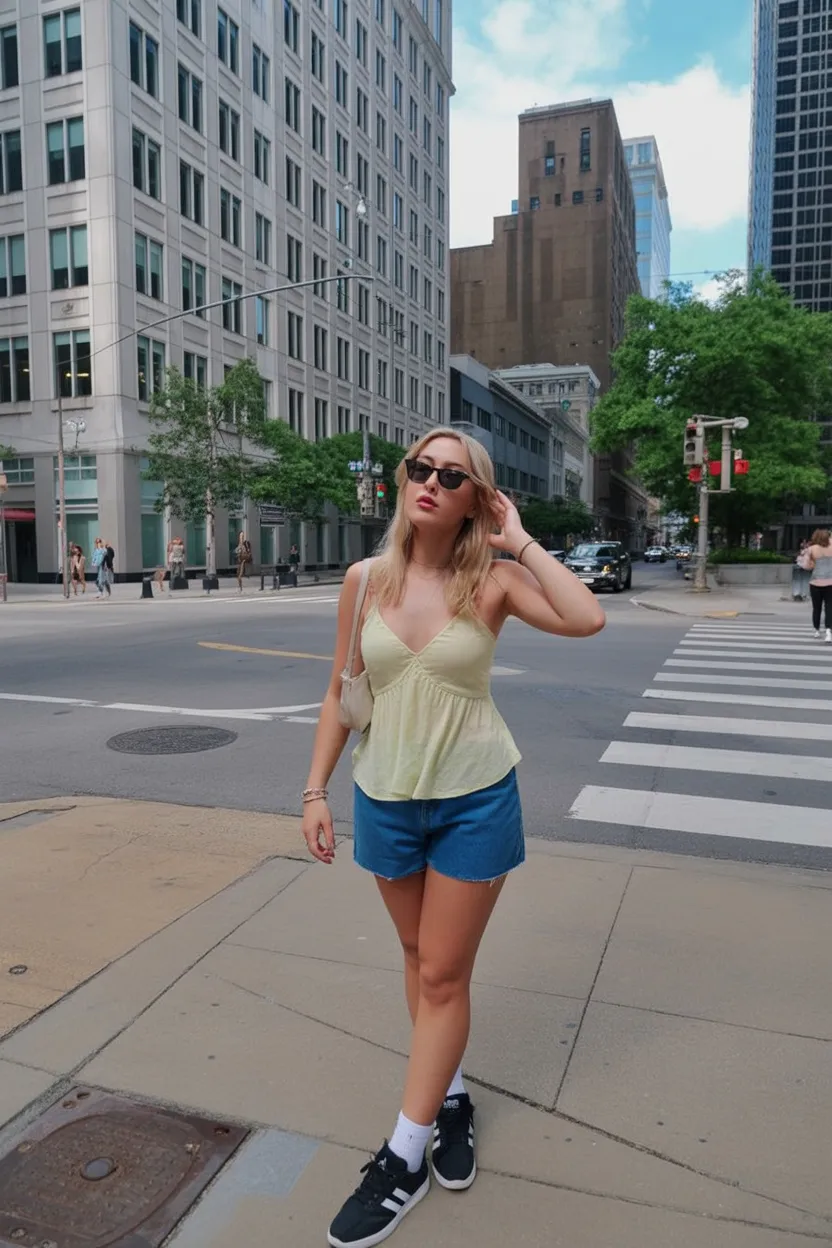 17. Light Top and Denim Shorts City Stroll