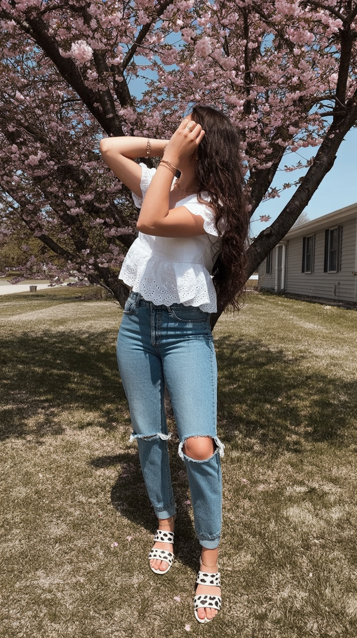 17. Eyelet Top with Light-Wash Jeans